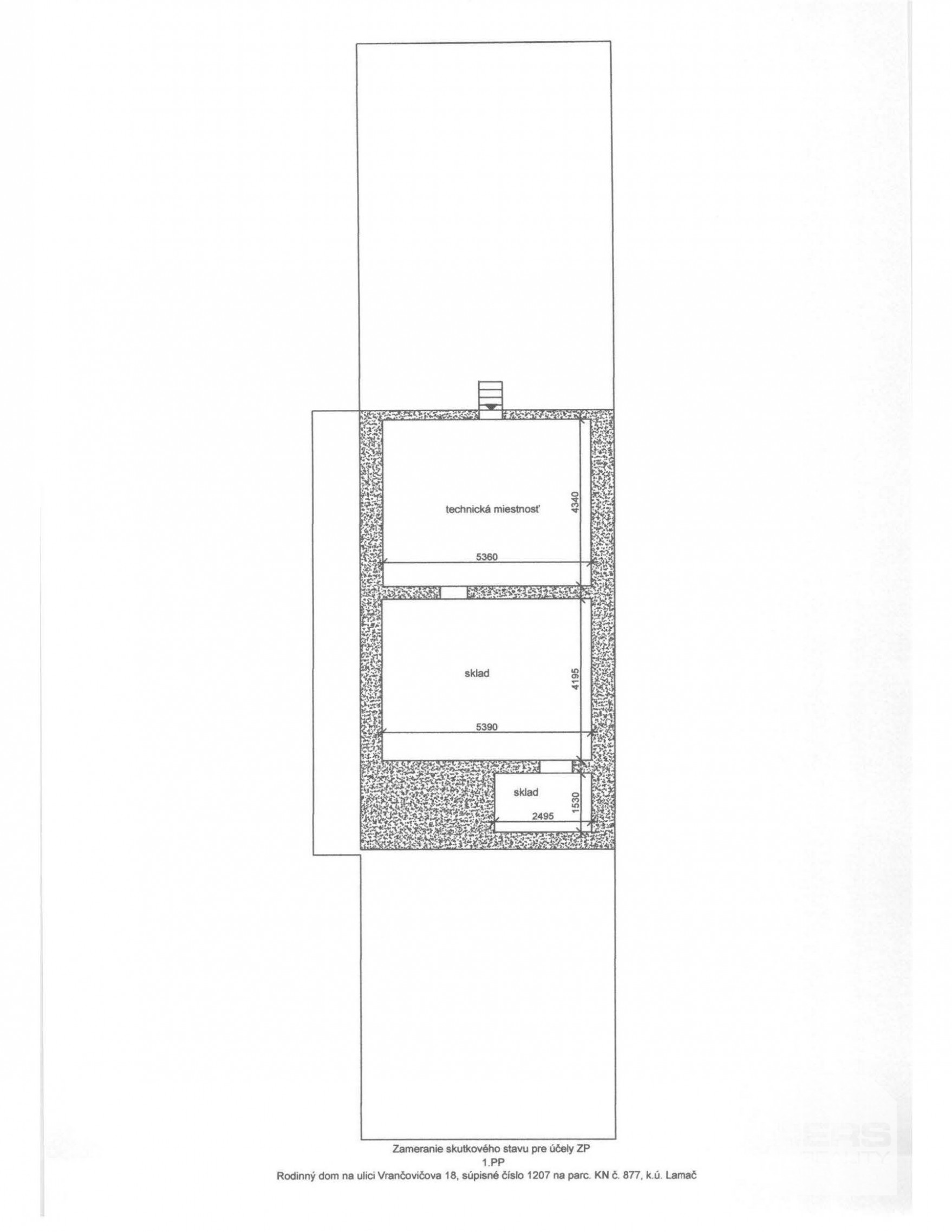 1PP: technická miestnosť a sklad – 60m2
