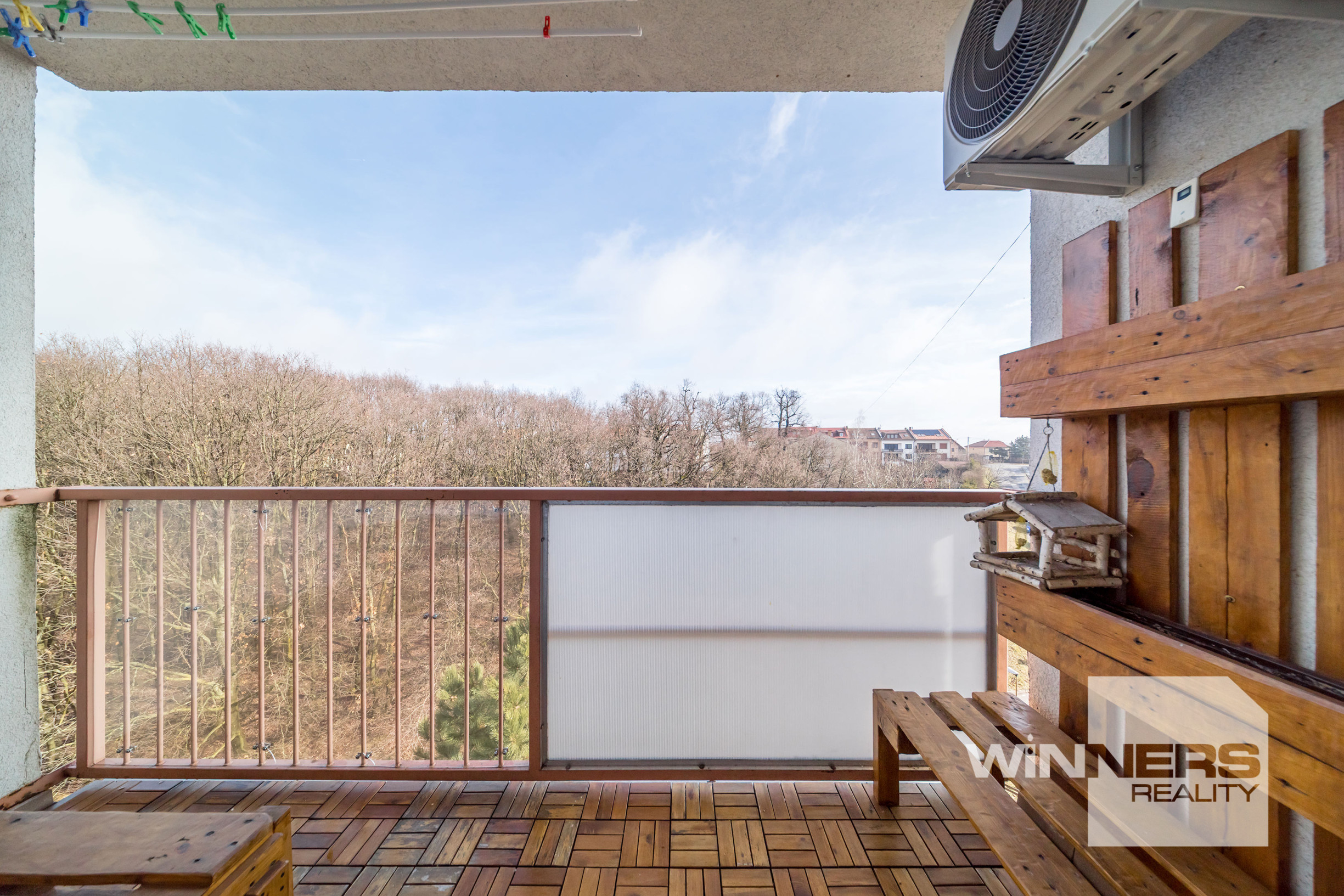 * výhľad z loggie na les