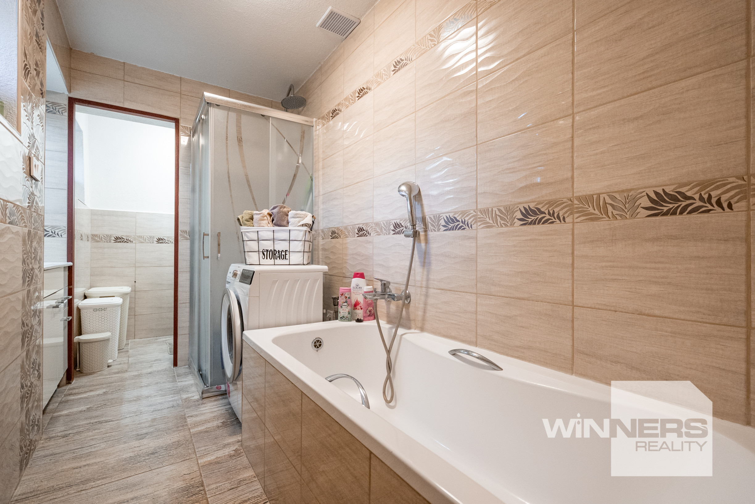 Po ľavej strane chodby sú situované dve samostatné izby – jedna menšia so zabudovanou skriňou a dostatkom úložného priestoru a druhá priestranná izba vedľa kúpeľne. Kúpeľňa je vybavená vaňou, sprchovým kútom, toaletou a umývadlom.
