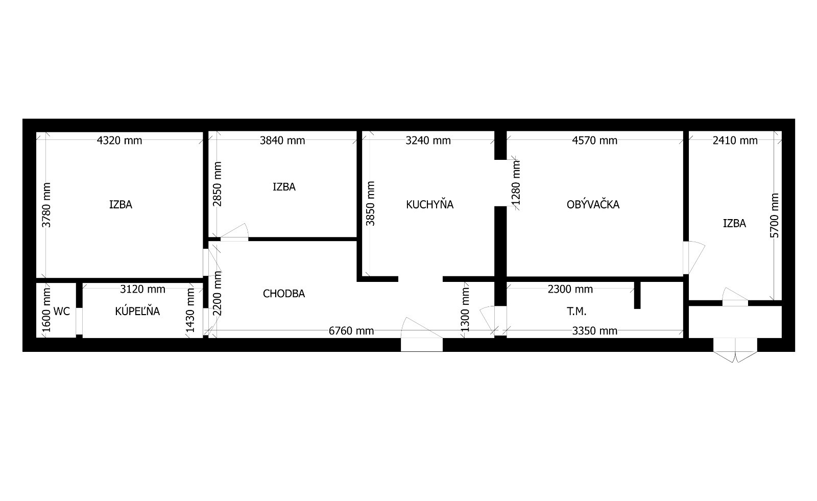 Dispozícia: 4 izby + kuchyňa