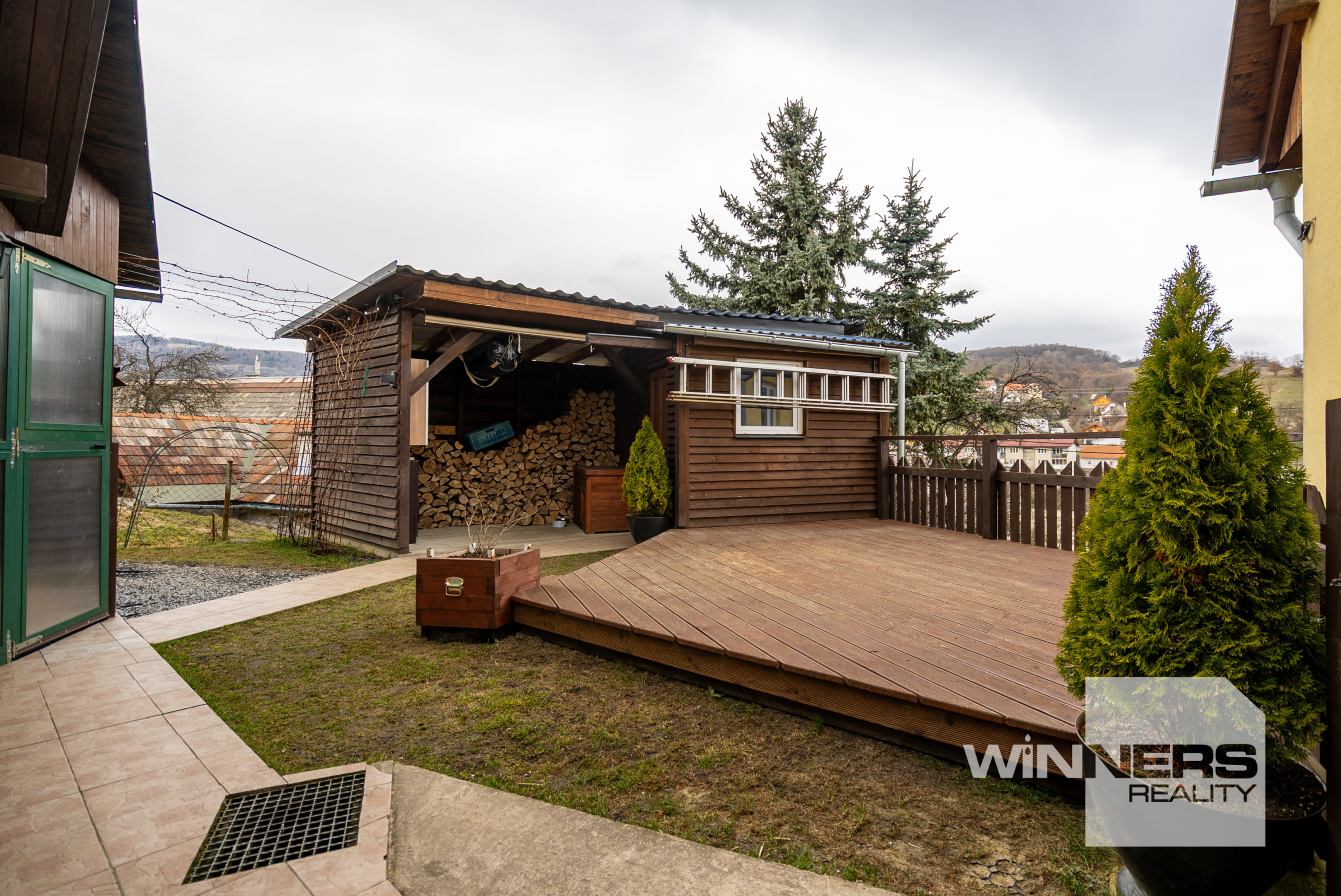 Pozemok je kompletne oplotený a prakticky rozdelený, pričom časť je vyčlenená na parkovanie pre viacero áut. Nachádza sa tu priestor pripravený pre bazén, prístrešok na drevo, sklad alebo dielňa, ako aj menší sklad pri dome. Pozemok je udržiavaný a ponúka dostatok priestoru na oddych aj bežné využitie bez náročnej údržby. V prípade potreby je možné dobudovať napríklad prístrešok na parkovanie.
