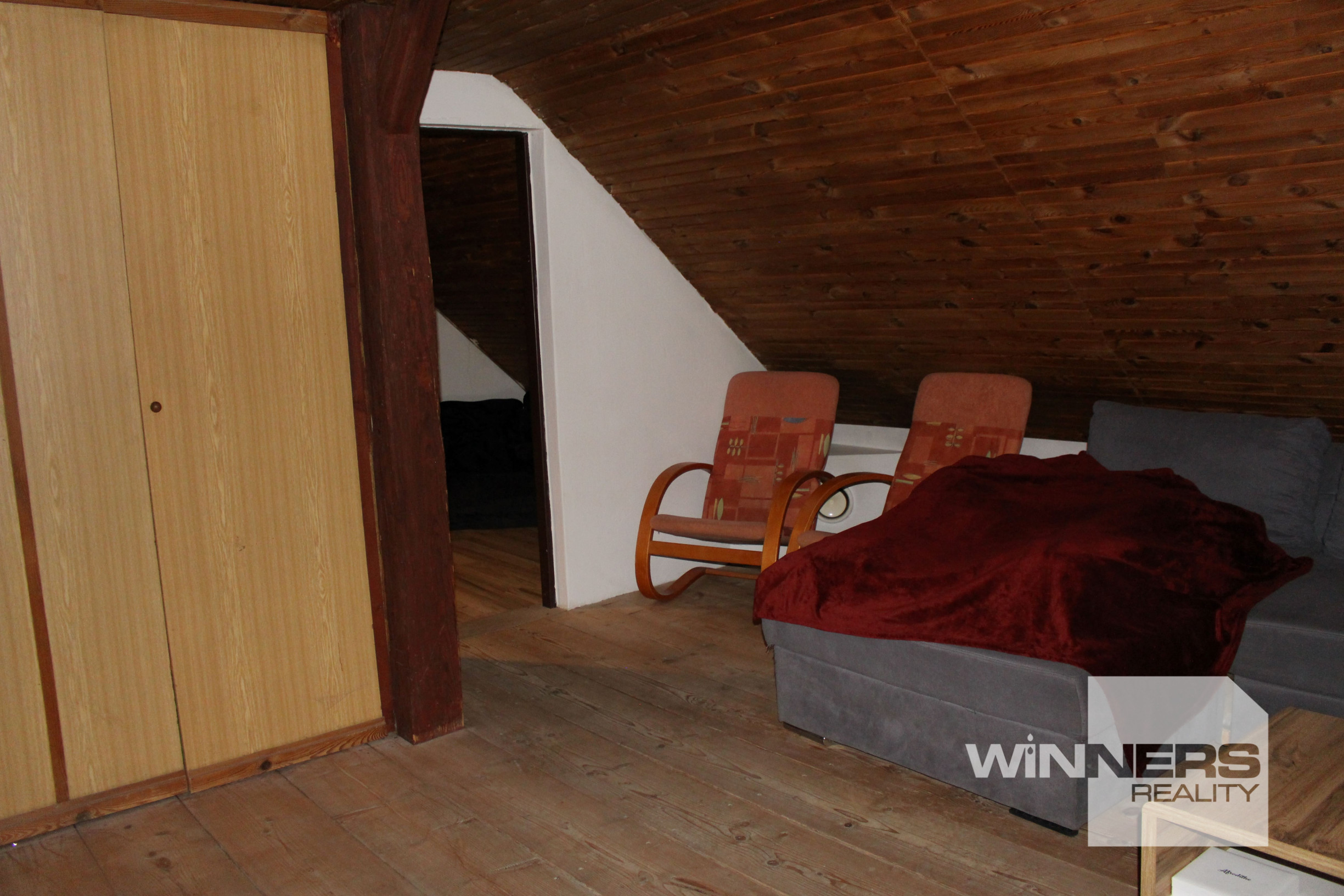 Winners Reality Slovakia predáva 3 izbový rod. dom v prevažne zrekonštruovanom stave s dreveným prístreškom - dielňou, drevárňou, so vstupom cez spoločný dvor so susedom, ktorý býva za domom. Dom je dvojpodlažný s dvoma priechodnými izbami na podstrešnom podlaží. Postavený je z tehál a zmiešaných materiálov na kamenných základoch. Strecha je z pálenej škridle.