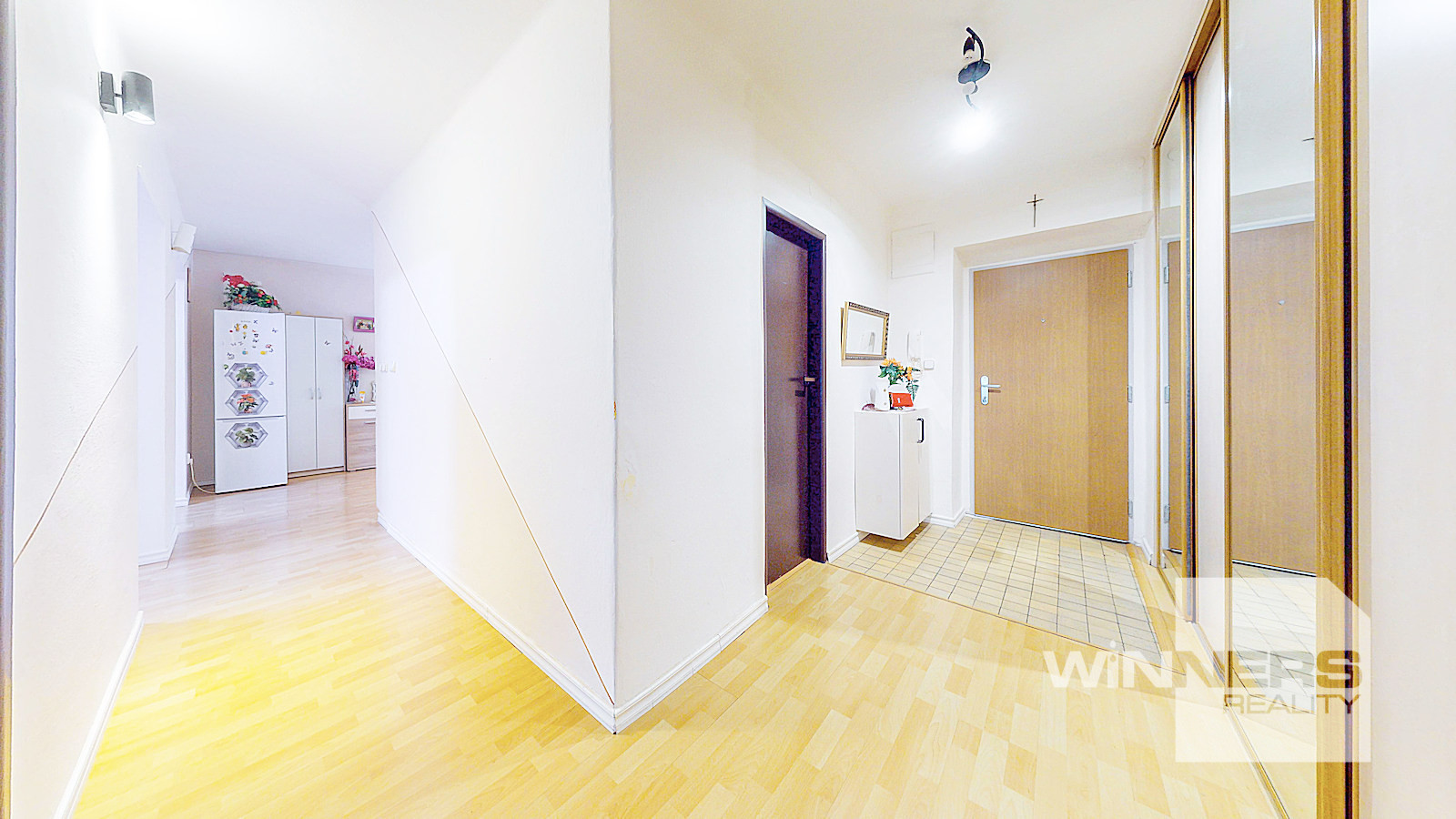 Dispozícia bytu je otvorená a priestranná, kuchyňa je prepojená s obývacou izbou, čo vytvára moderný vzhľad a rozdeľuje byt na dennú a nočnú časť. Na chodbe sa nachádza veľká priestranná vstavaná skriňa. Byt bol pred viacerými rokmi celkovo zrekonštruovaný, pôsobí veľmi príjemne a útulne. Ponechanie zariadenia bytu je na dohode – aktuálne nie je v cene predaja. Samozrejme v byte zostávajú vstavané skrine a kuchynská linka.